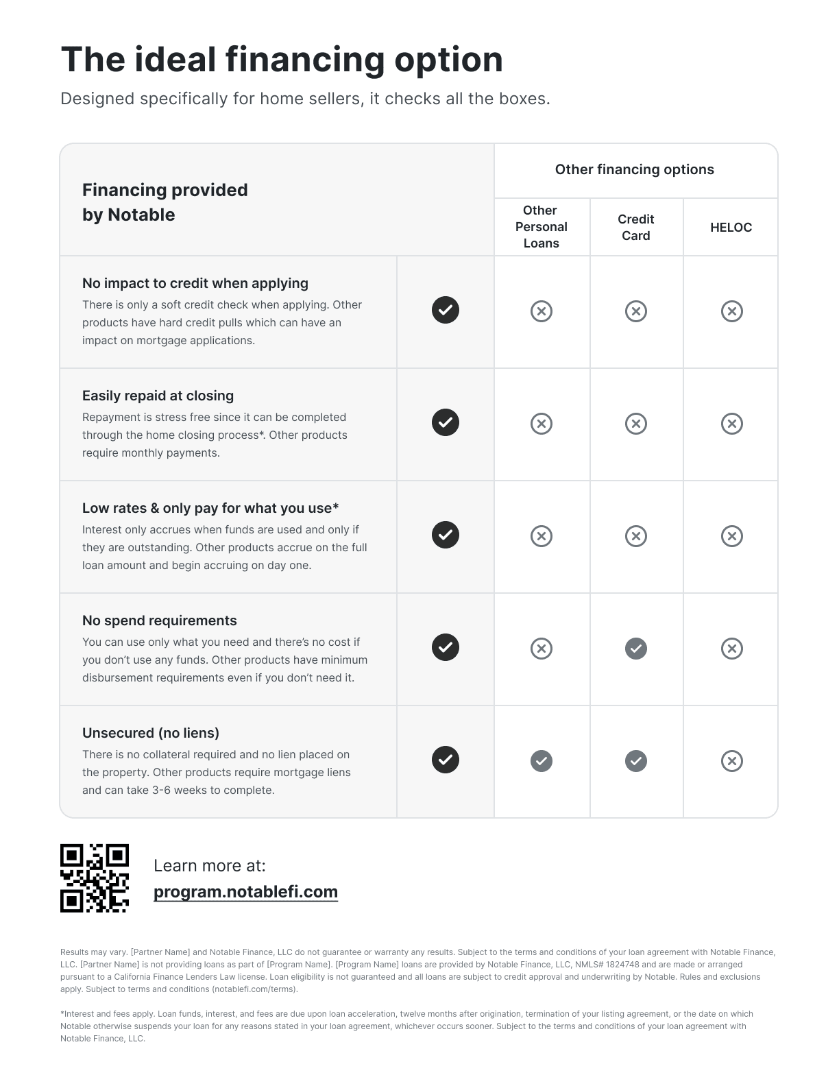 Results may vary. Notable Finance, LLC does not guarantee or warranty any results. Loan eligibility is not guaranteed and all loans are subject to credit approval and underwriting by Notable. Rules and exclusions apply. Subject to terms and conditions (notablefi.com/terms).