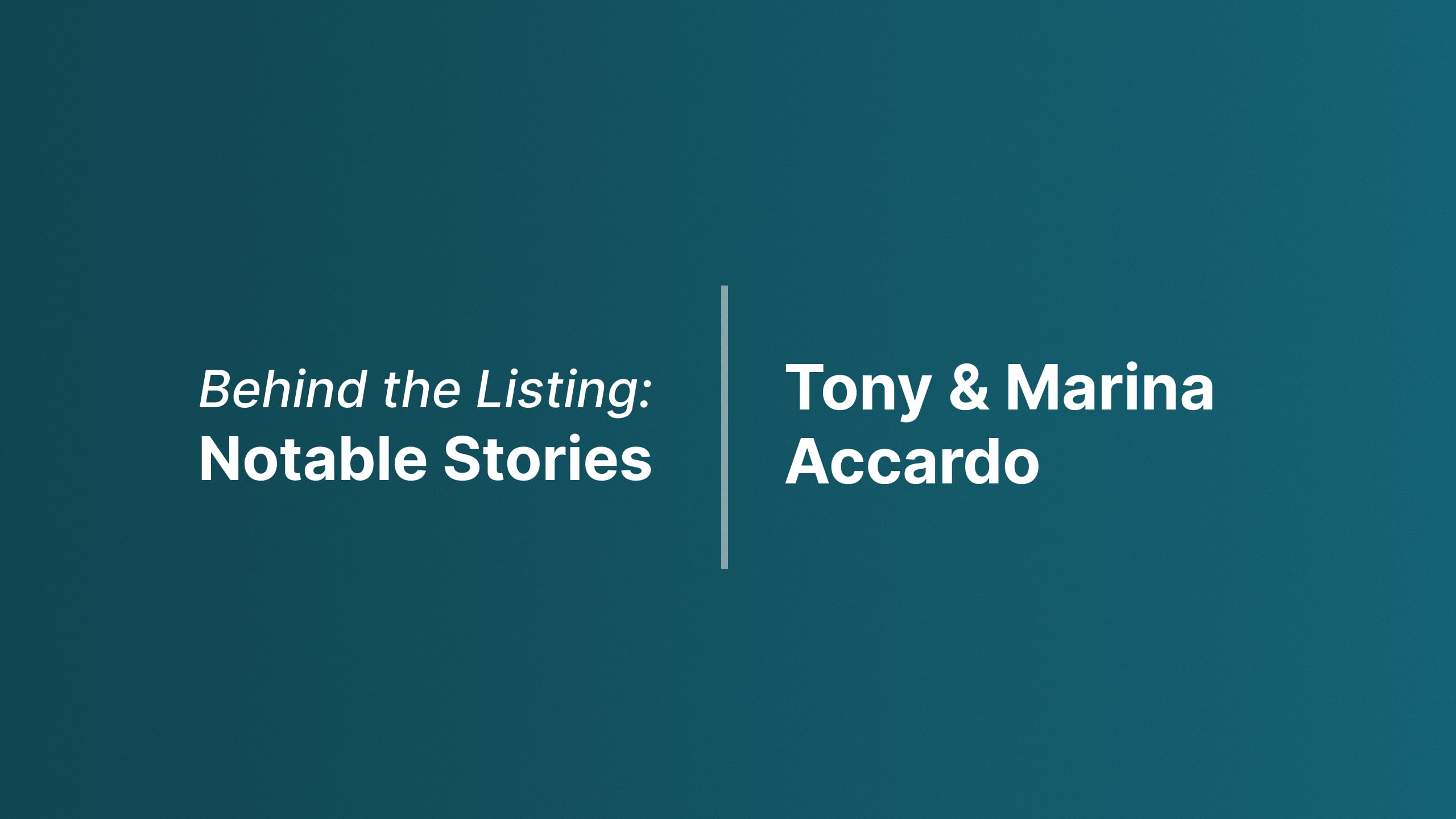 Behind the Listing: Tony & Marina Accardo